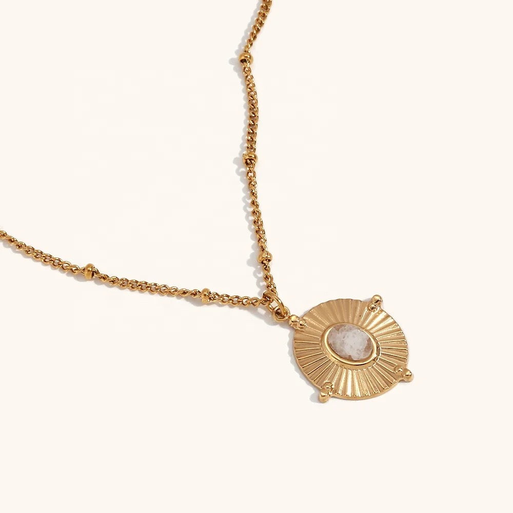 Experience the perfect blend of elegance and island vibes with our Marcella Oval Pendant. Featuring a natural white stone oval pendant on a delicate golden chain, this boho-inspired piece adds a touch of sophistication to any outfit. No more boring necklaces!