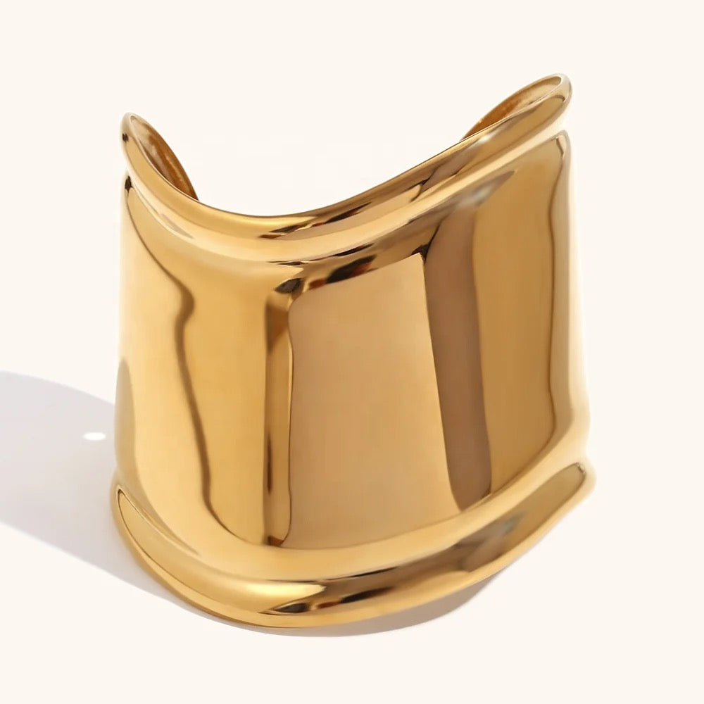 Introducing THE Bangle - the perfect accessory for women who dare to be bold. Made of stainless steel, this bangle is waterproof, hypoallergenic and non-tarnish. Perfect to wear at the beach with your favourite bikini or with a beautiful dress for a fancy dinner. Its exaggerated wave form adds a touch of sophistication and style to any outfit.